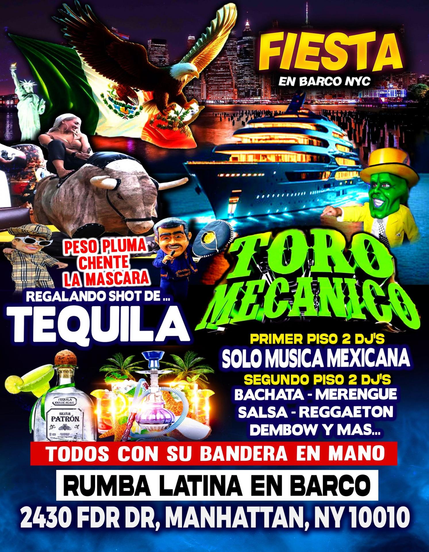 Fiesta Mexicana En Barco + Tequila Gratis + Dj's + Toro Mecanico