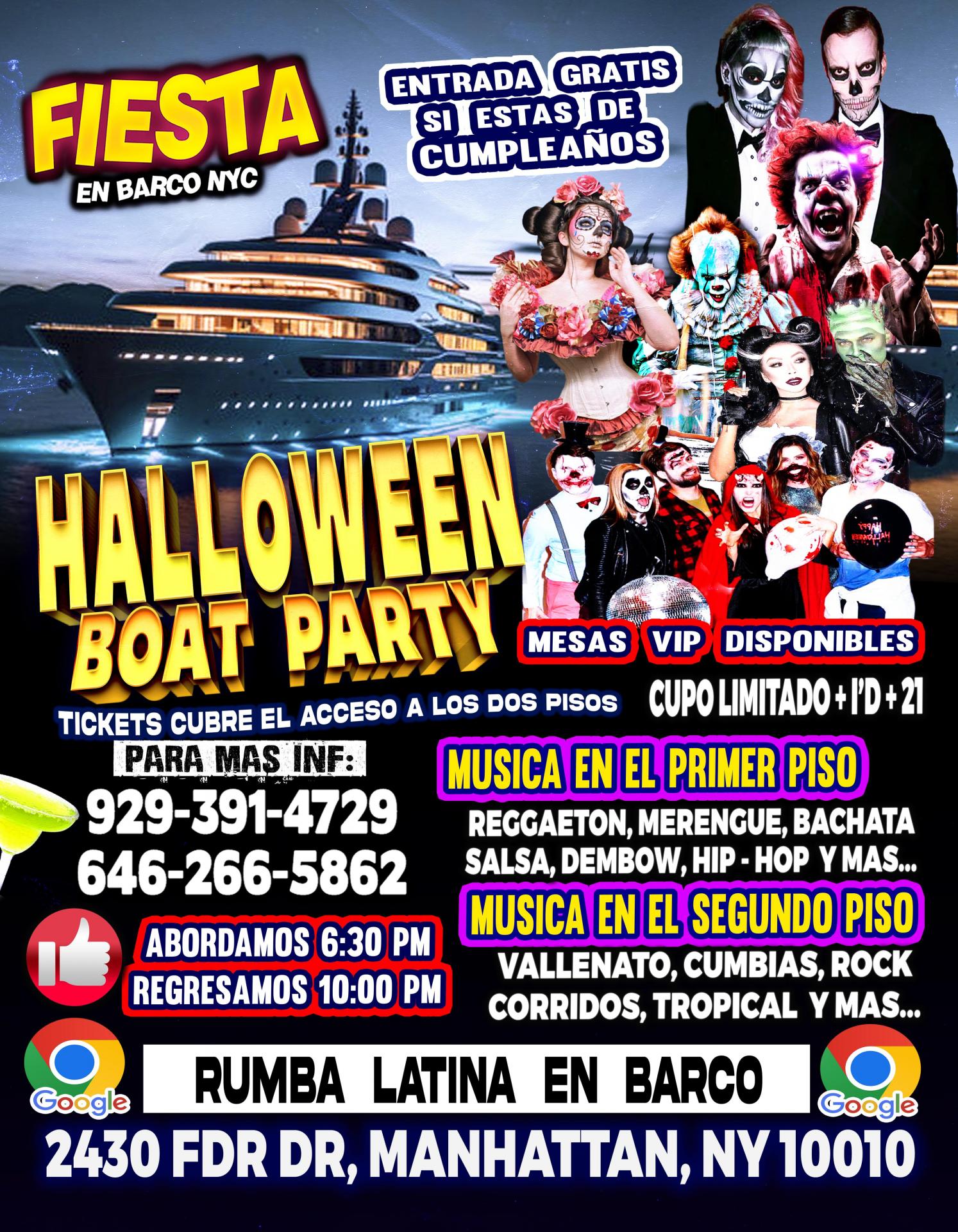 HALLOWEEN EN BARCO + $1500 CASH EN PREMIOS + DJ'S